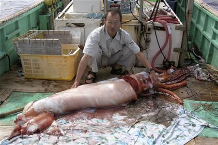The giant squid is a deep-ocean dwelling squid in the family Architeuthidae, represented by as many as eight species. Giant squid can grow to a tremendous size: recent estimates put the maximum size at 13 metres (43 ft) for females and 10 metres (33 ft) for males from caudal fin to the tip of the two long tentacles (second only to the colossal squid at an estimated 14 metres (46 ft), one of the largest living organisms). The mantle is about 2 metres (6.6 ft) long (more for females, less for males), and the length of the squid excluding its tentacles is about 5 metres (16 ft). There have been claims reported of specimens of up to 20 metres (66 ft), but no animals of such size have been scientifically documented.